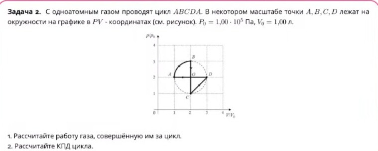 А1 это работа четверти окружности, тогда площадь это и есть работа. У меня выходит что A=п*R^2/4, но в ответе там еще умножили это на p0V0, можете объяснить для чего она, если мы можем просто найти с помощью 1 первой формулы