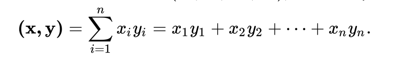 \vec{v}\cdot \vec{w} = \sum_{i=1}^n a_i b_i