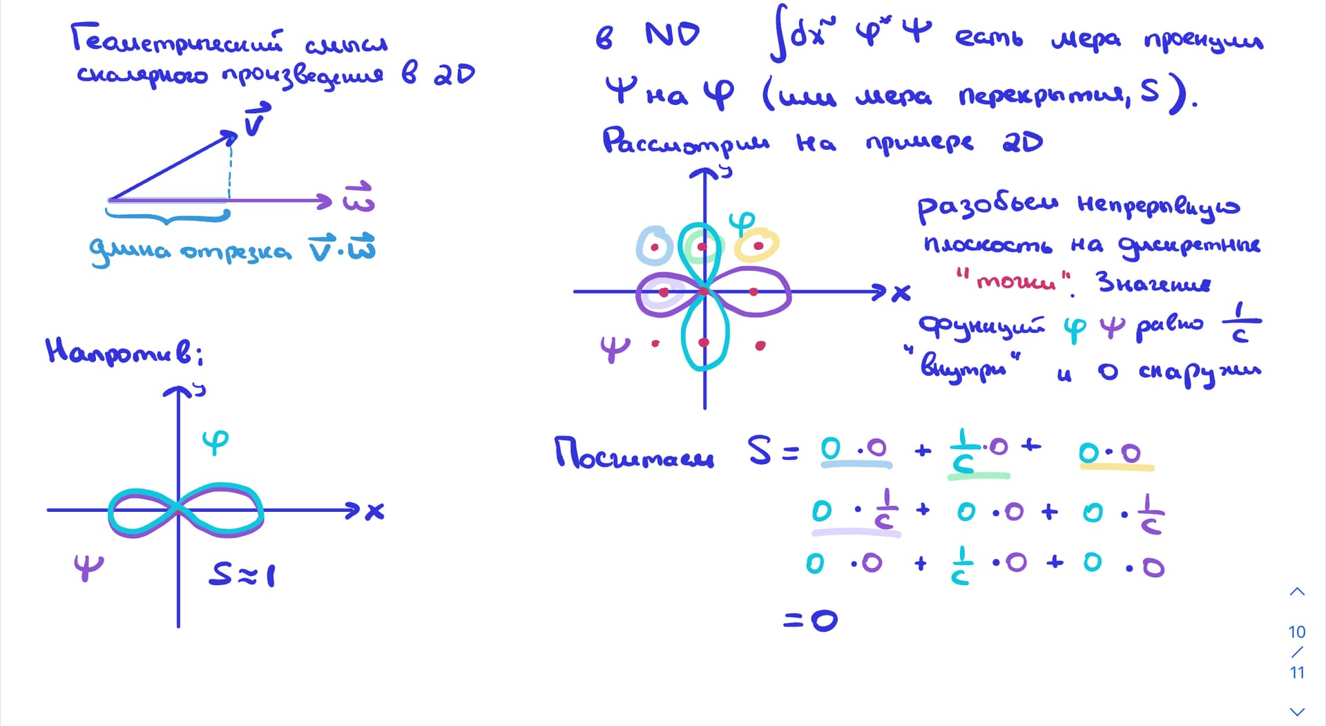 - Убедиться, что я соглашаюсь с терминологией для векторов в 2х и 3х мерных пространствах. Что например \vec{v} \cdot \vec{w}=0 \implies \vec{v} \perp \vec{w}