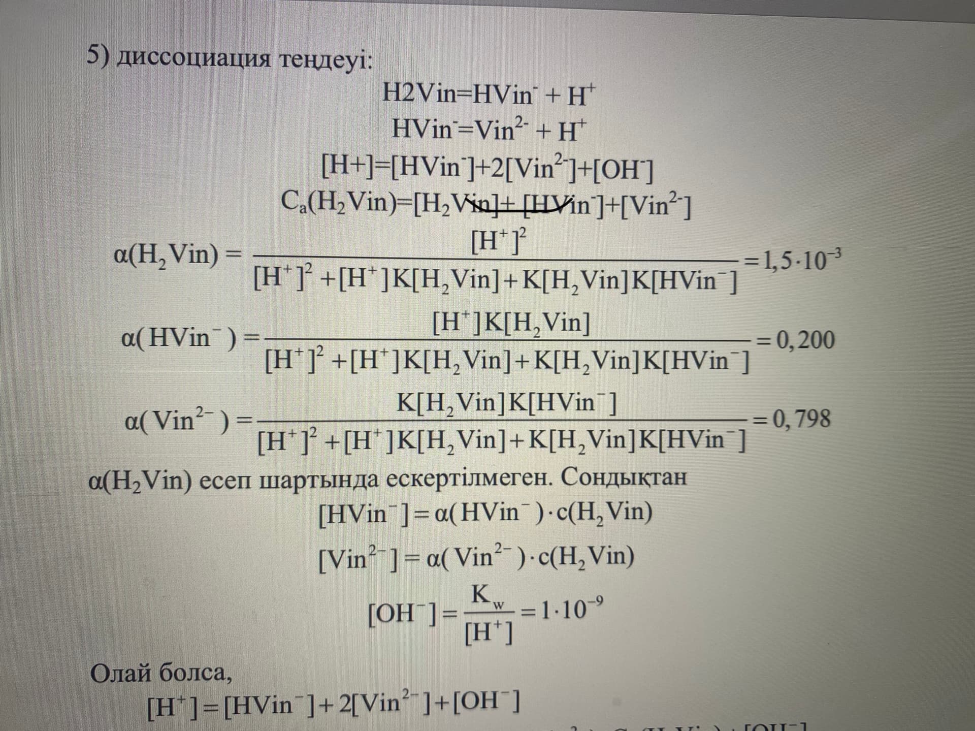 [H^+] = [HVin^-] + 2 [Vin^{-2}] + [OH^-]