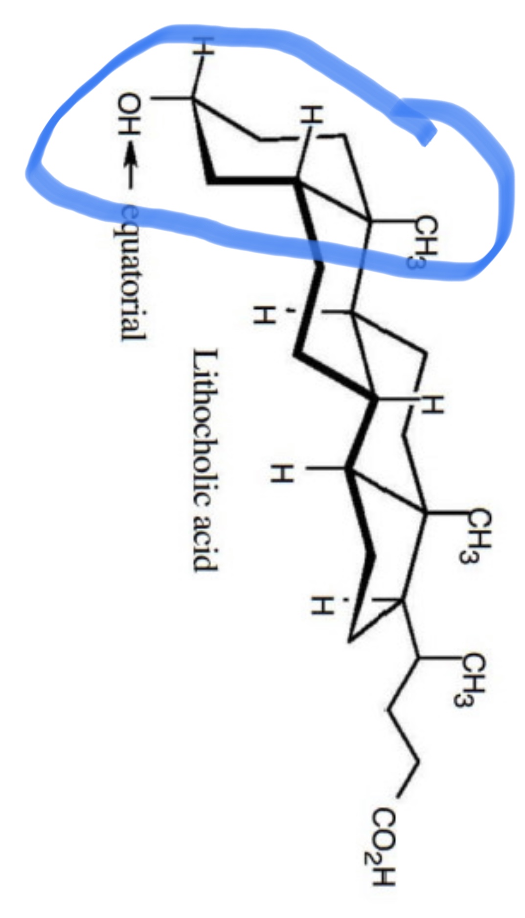 Почему гидроксильная группа находится в equatorial position? И вообще как определить где будут стоять группы, смотря на их положение в обычной (скелетной) структуре.