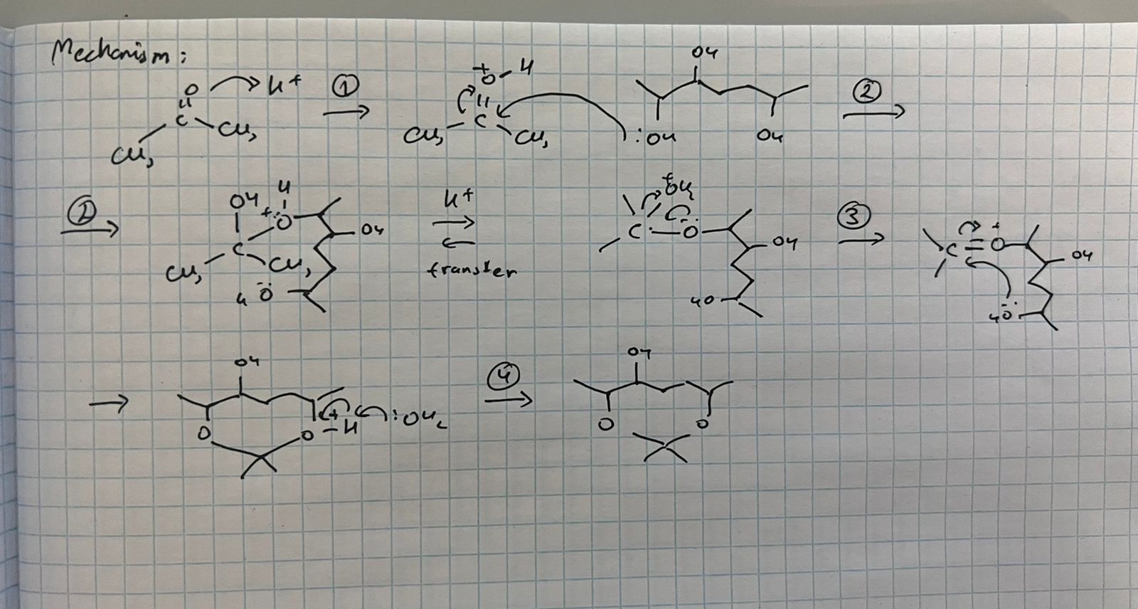 Я предлагаю что то такое , на счет того как гуглить эту реакцию просто можете загуглить acetal mechanism ( ну а вообще настоятельно рекомендую прочитать макмурри , и кста то что я написал может быть не совсем правильно , заранее сори)