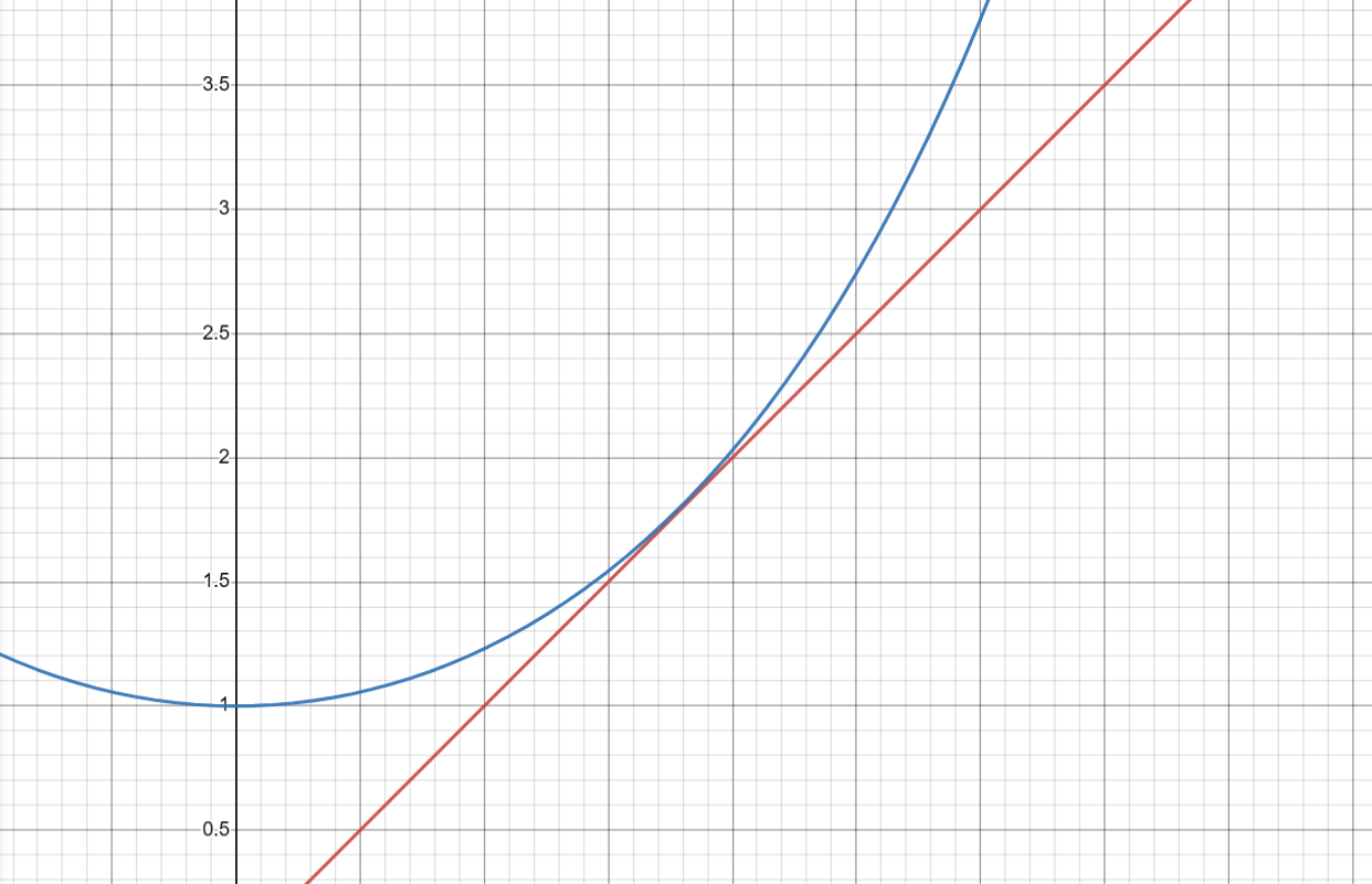 and x) - To make these membranes exist stably, a constant b must be found to satisfy r=\frac{1}{b} \cosh b \ell, but once \ell / r is greater than a certain critical value, b does not exist. If the function graph of w=\cosh \eta z and w=z is known as follows, the three curves in the figure correspond to different values of \eta respectively. When \eta<\eta_{0}, there are two intersections between w=\cosh \eta z and w=z; when \eta>\eta_{0}, there is no intersection between w=\cosh \eta z and w=z; and when \eta=\eta_{0}, there is exactly one intersection. If \eta_{0} \approx 0.663 is obtained through calculation, try to find the maximum value of \ell / r that enables the membrane to exist stably.
