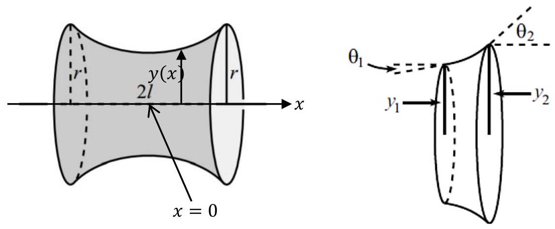 Problem: Consider the soap membrane suspended between two ideal rings with radius