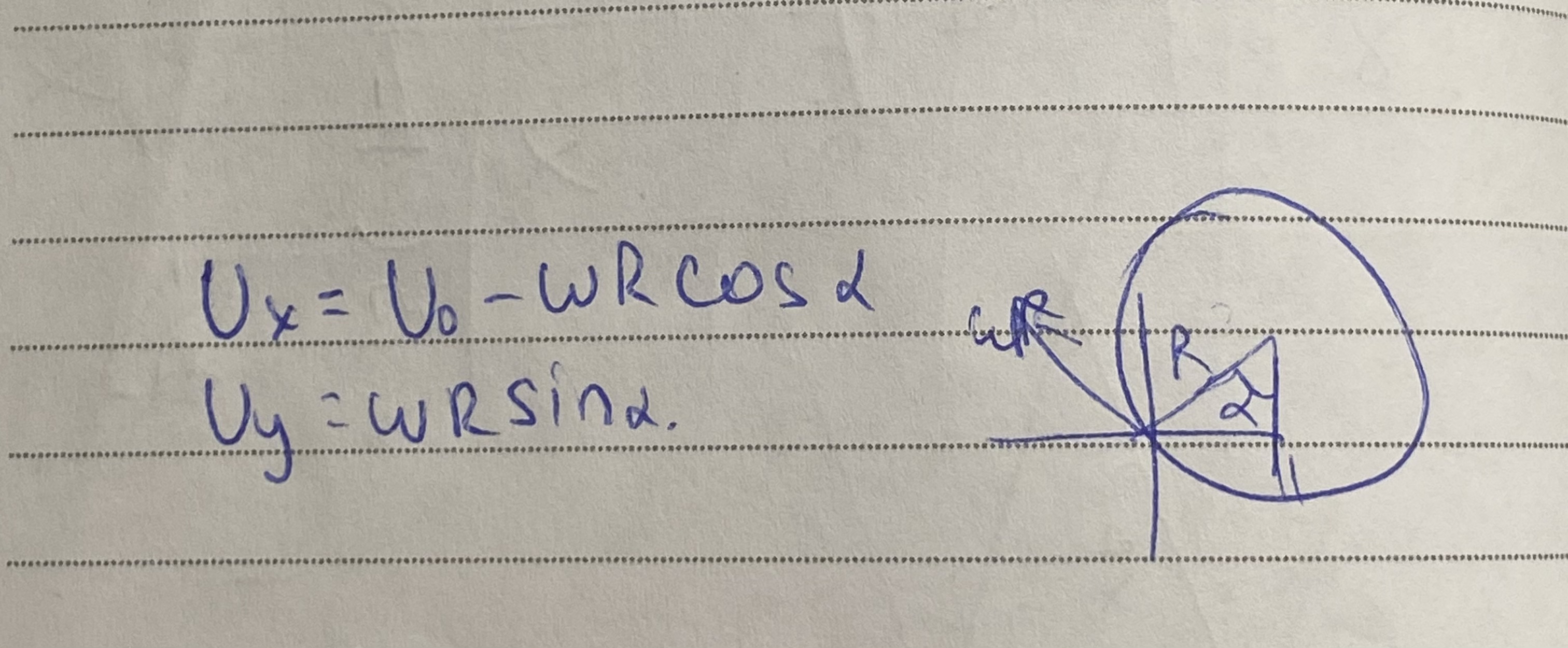 как условие того, что точка на уровне центра, будет влиять на скорость вдоль поверхности и вверх?