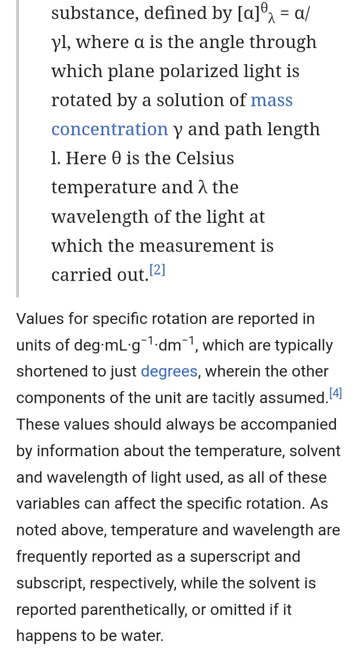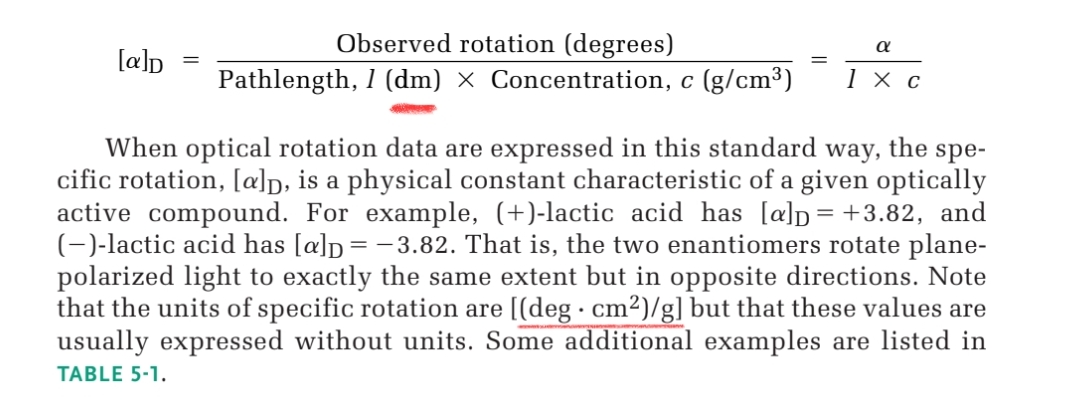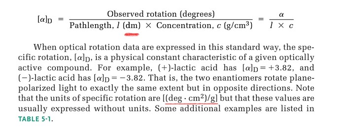 Но почему тогда не напишут что единица измерения specific rotation [(deg×cm3)/(g×dm)].