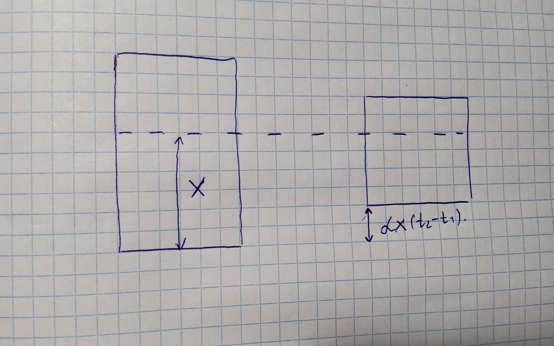 Тогда тут ошибка в том, что мой x_1- это начальная длина до охлаждения, а значит я могу пользоваться формулой линейного расширения. А ваш x_1 представляет собой конечную длину листа после охлаждения, а значит соответственно мы не можем пользоваться линейным расширением для конечной длины листа.