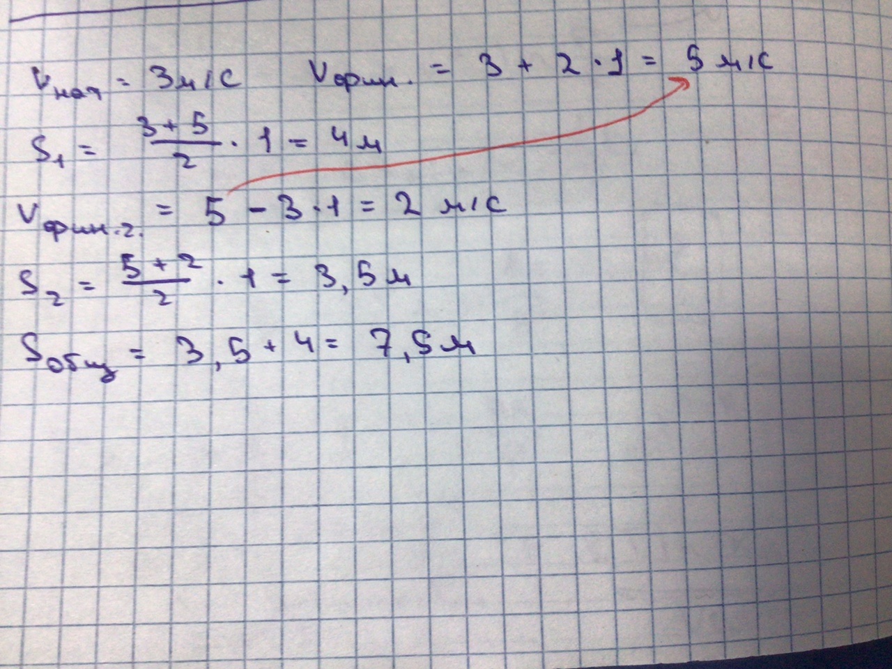 Получается, что пройденный путь на первом участке 4 метра, а на втором 3.5 метра.