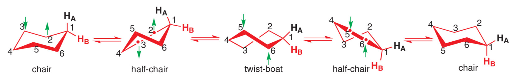 Говорят эти два конформера быстро трансформируются в друг друга, но я что-то понять не могу как именно.