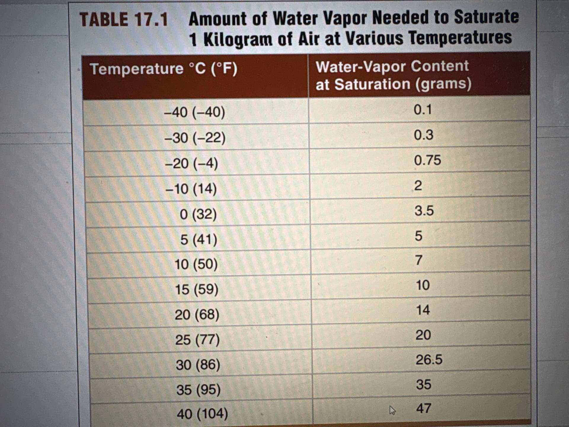 Такс, во-первых, там ошибочка в сравнении: в одной таблице показано насыщение при объёме воздуха 1 м³ (абсолютная влажность), а в другой — на 1 кг (это вроде называется условной). Поэтому, как по мне, сам вопрос некорректен ![]()