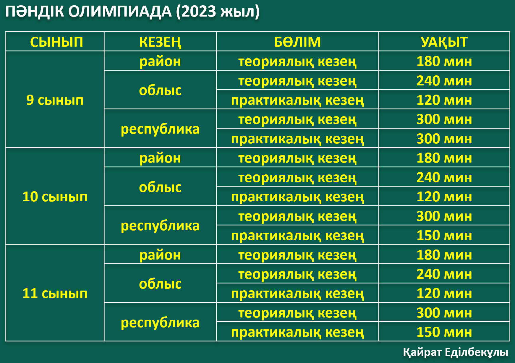 Можете подсказать регламент олимпиад по времени (мин) 2023: