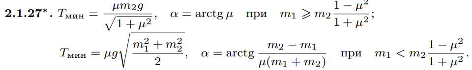 Я знаю откуда можно получить соотношения масс, но я не понимаю что будет если m1<m2*(1-µ^2)/(1+µ^2). то есть как найти оптимальный угол для этого случая