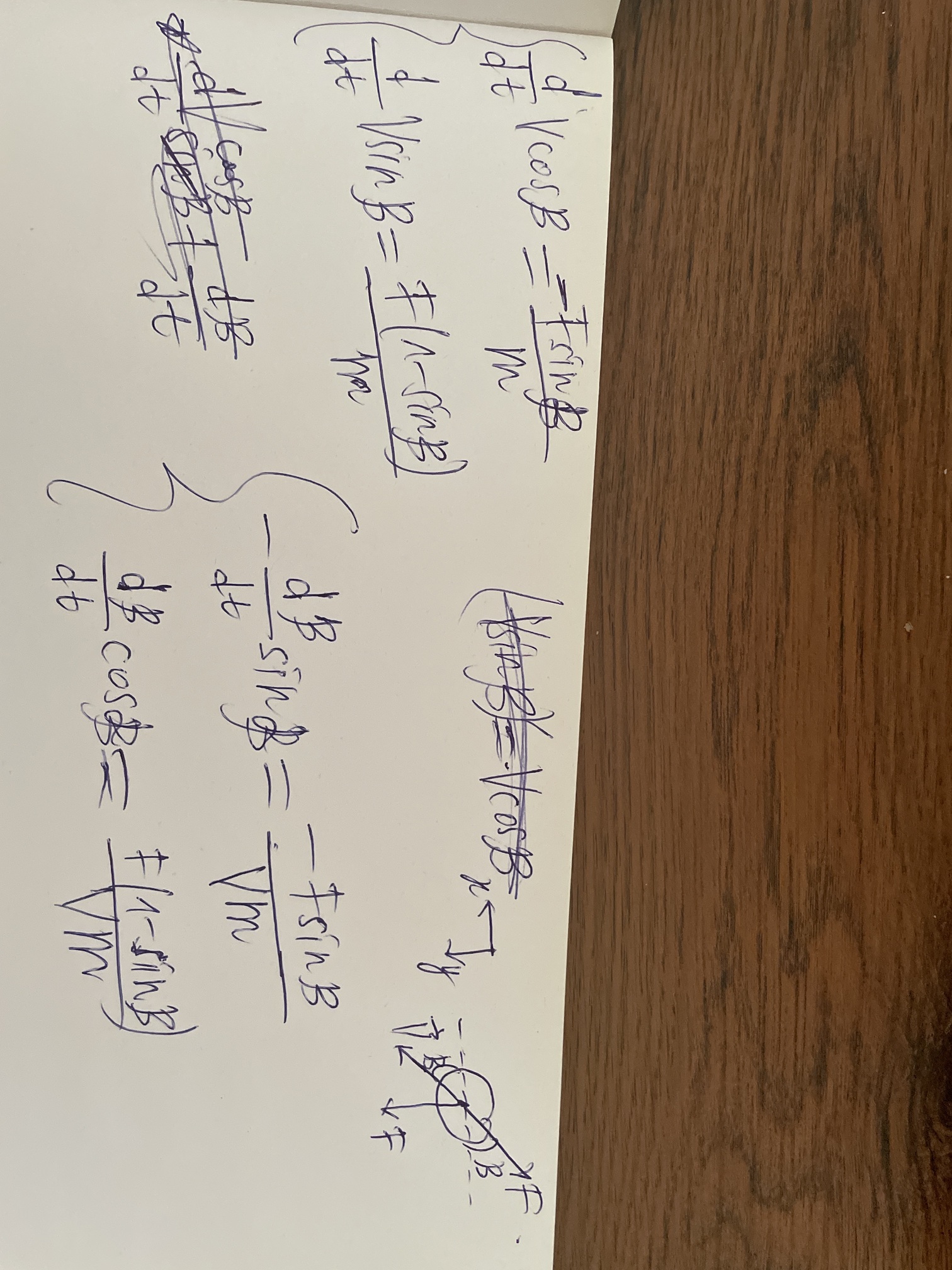 Тут можно пойти прямым путем вычислений и представить a_x = \frac{\mathrm d v_x}{\mathrm dt} = \frac{\mathrm d(v\cos\beta)}{\mathrm dt} = \frac{\mathrm d v}{\mathrm dt}\cos\beta - \frac{\mathrm d \beta}{\mathrm dt}v\sin\beta. Аналогично для a_y. Это хоть и довольно муторно, но следует попробовать решить сперва так.
