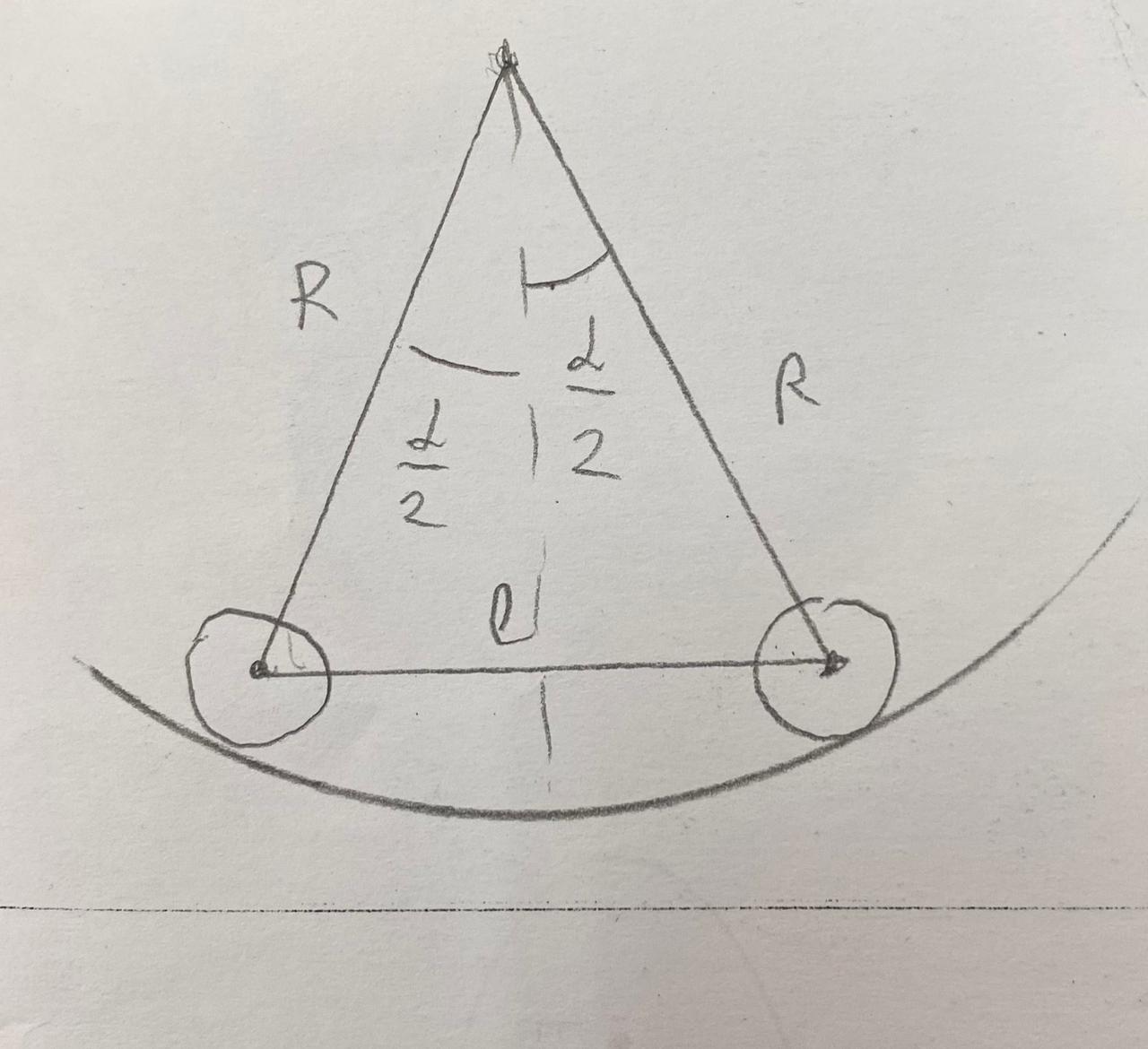 Так и надо делать. С помощью радиуса чаши ты должен определить угол под которым гантеля наклонена, и тем самым определить высоту на которой находится каждый из шариков.