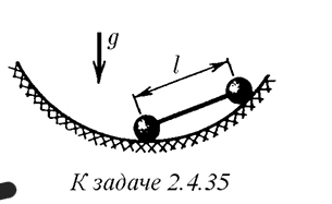 В сферической чаше радиуса R удерживают гантель в положении, когда один из шариков находится на дне чаши, а затем отпускают. Какое количество теплоты выделится к моменту, когда гантель прекратит свое движение из-за малого трения между чашей и гантелью? Длина гантели l, масса каждого шарика m.