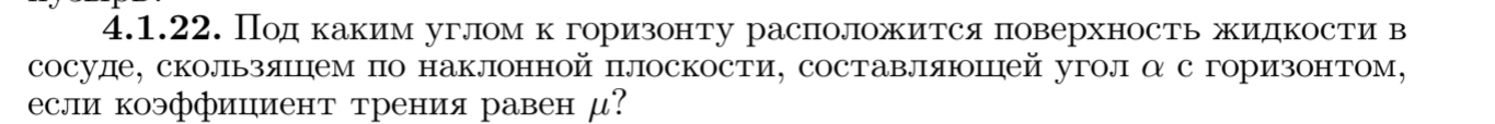 Ускорение сосуда, скользящего по наклонной плоскости, определяется формулой