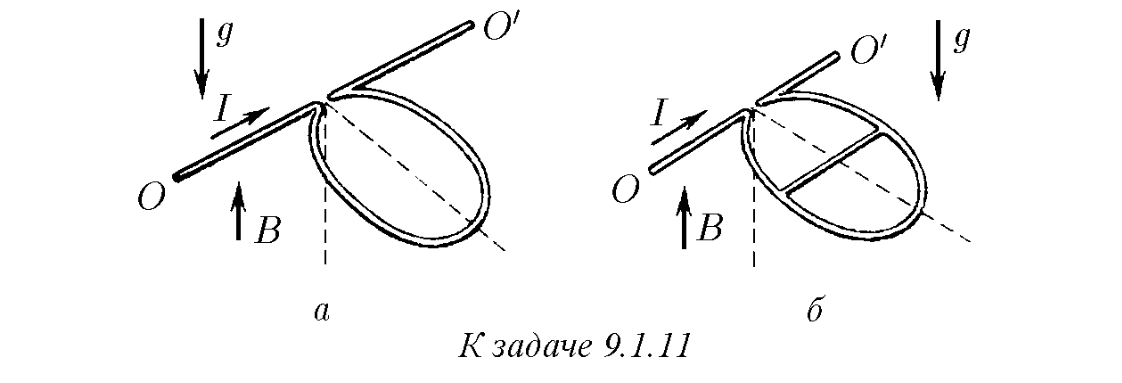 9.1.11. а. Проволочная рамка в виде окружности с током может вращаться