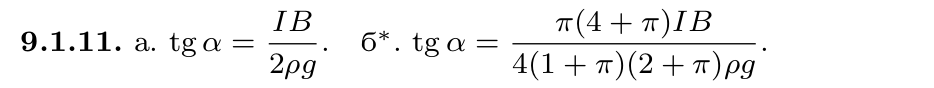 перемычку, параллельную горизонтальной оси OO0 , вокруг которой рамка может вращаться. Масса единицы длины рамки и перемычки одинакова и равна ρ. Ток, входящий в рамку, равен I. Рамка находится в магнитном поле индукции B, направленном параллельно полю тяжести. На какой угол от вертикали отклонится рамка?