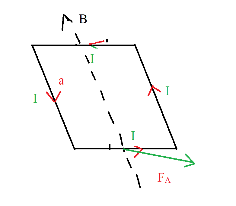 Тут все по условии, где рамка находится на вертикальной магнитной и таким образом, находится направление силы ампера на рамку. Эту силу на вертикальные не учитываем, потому что рамка параллельна рамке. Таким образом нашли направление силы Ампера. Теперь смотрим на задание с другого курса: