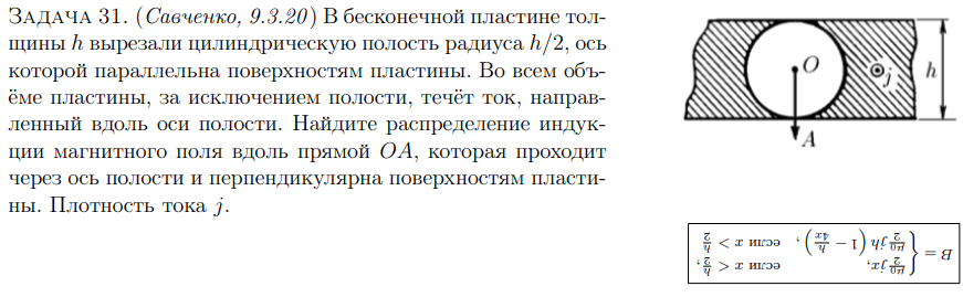 Можно ли считать что в полости течёт ток равной плотности, но в противоположном направлении, а в пластине тогда нет полости? И мне кажется, что в нутри пластины не будет магнитного поля, это верно?