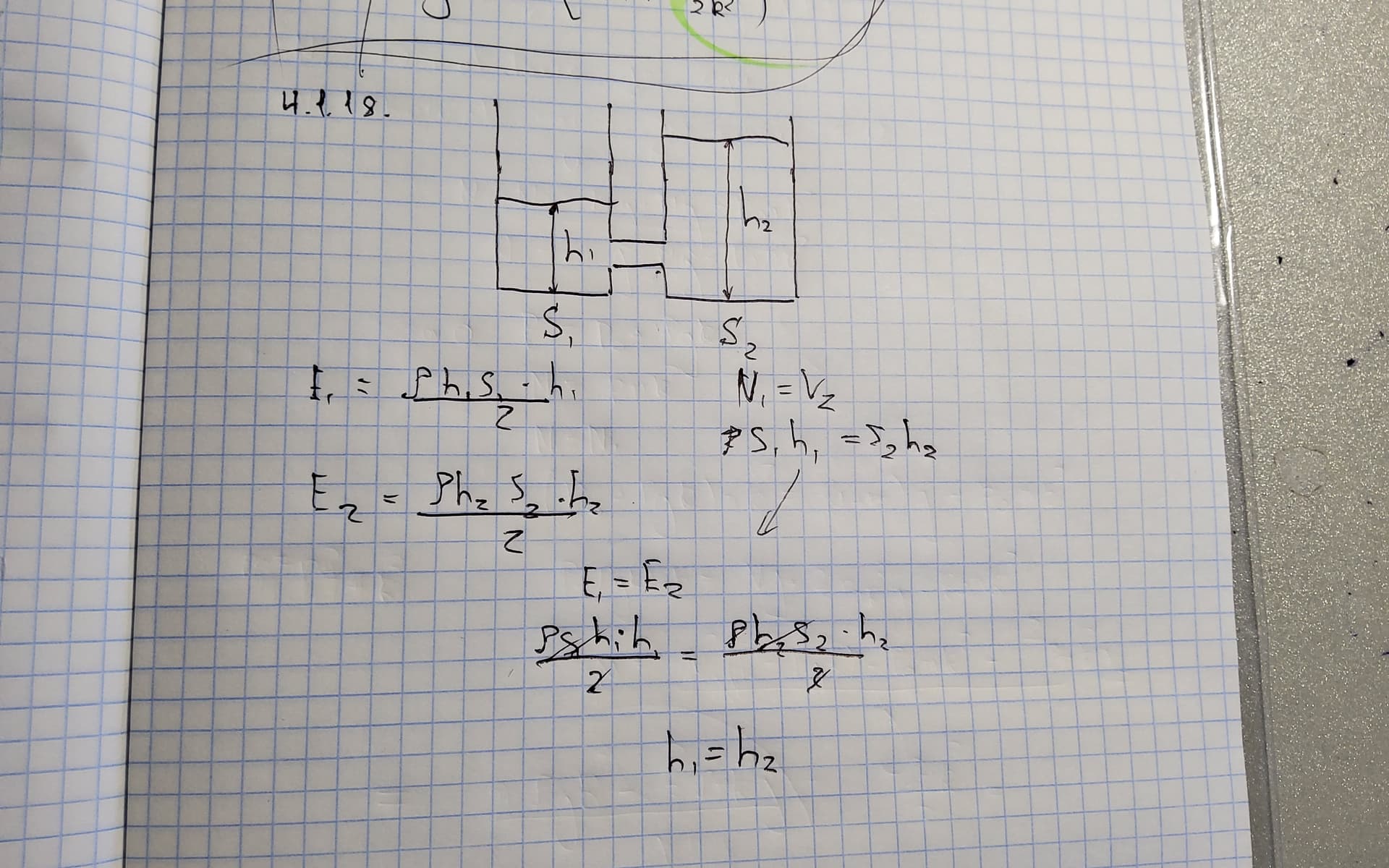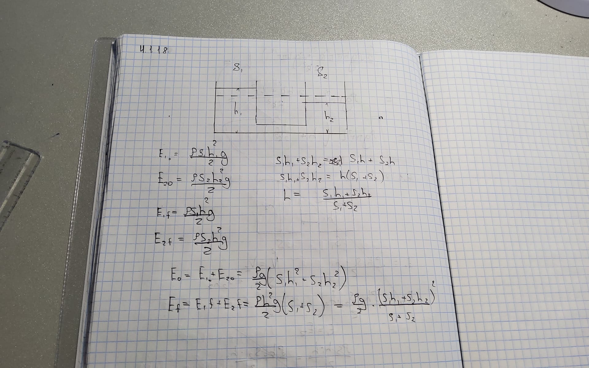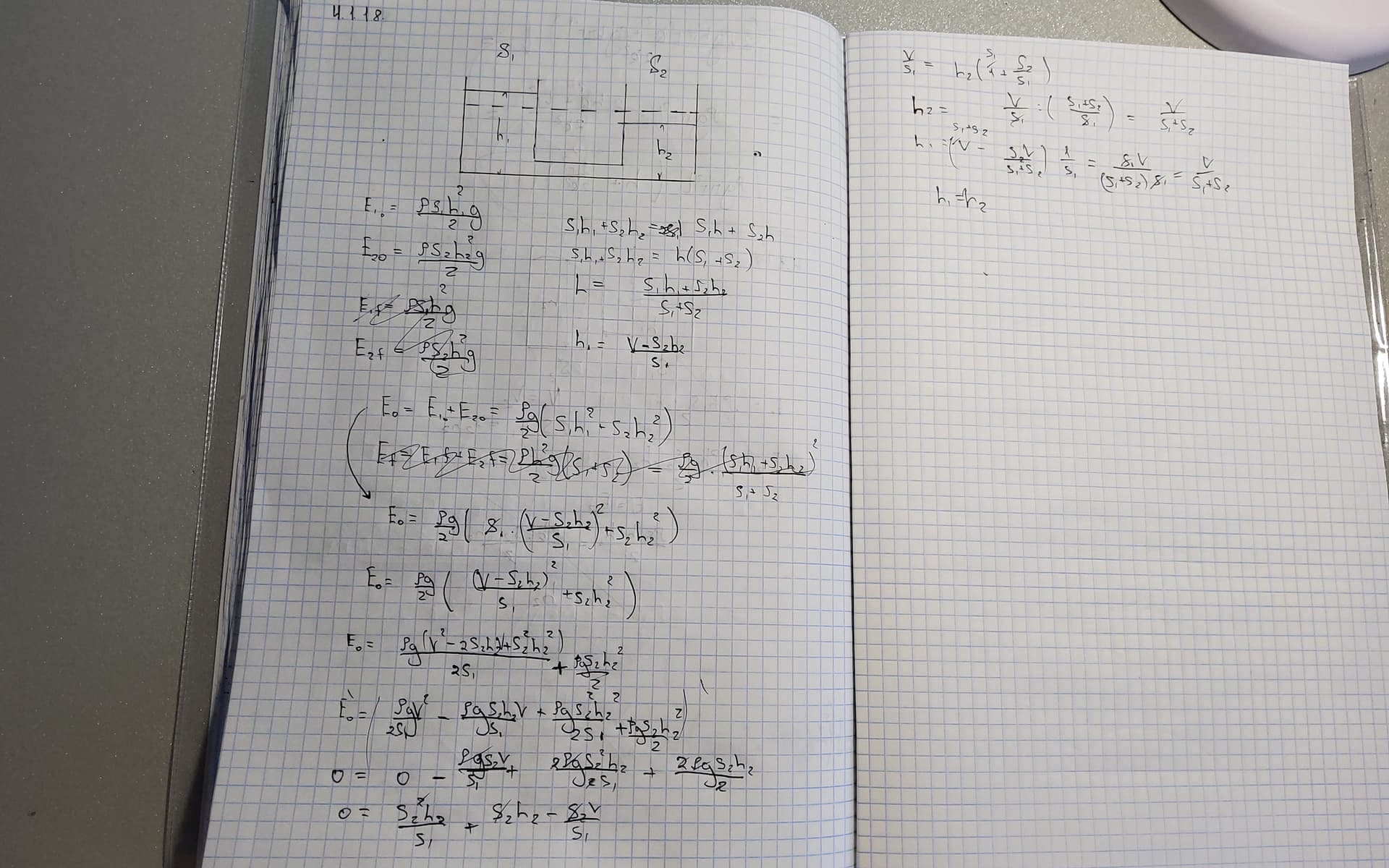 По идее я выразил через производную что Е минимальная,для Е минимальной нашел h2 и подставил h2 в выведение h1,и там вышло что h1=h2.Должно быть правильно
