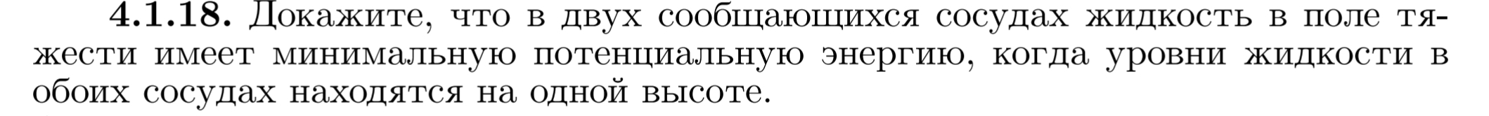 сначала найди потенциальную энергии в каждом из сосудов, умножив вес на высоту центра тяжести