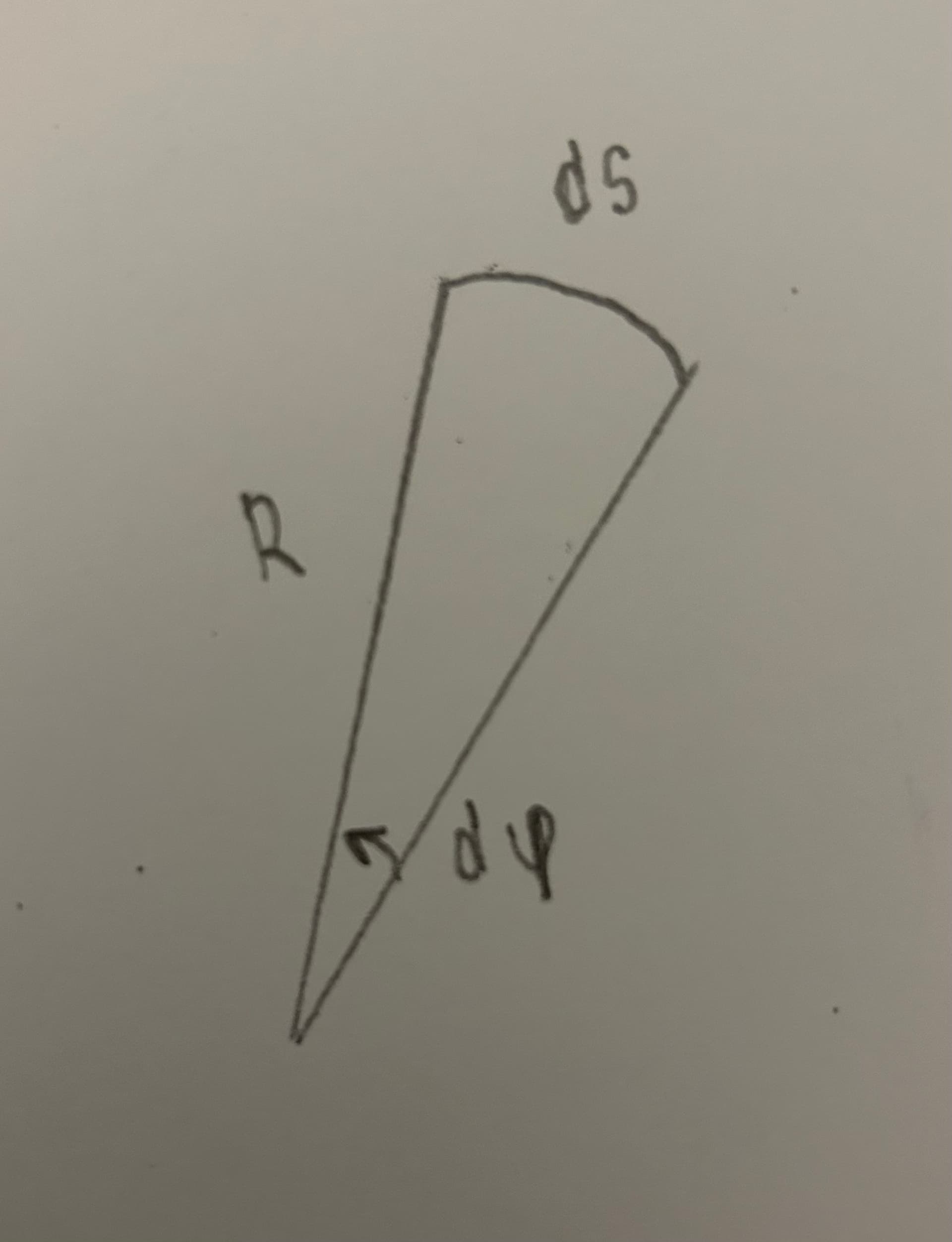 Если взять маленький отрезок кривой ds, то радиус кривизны, угол d\varphi и длина этого отрезка связаны между собой как Rd\varphi=ds