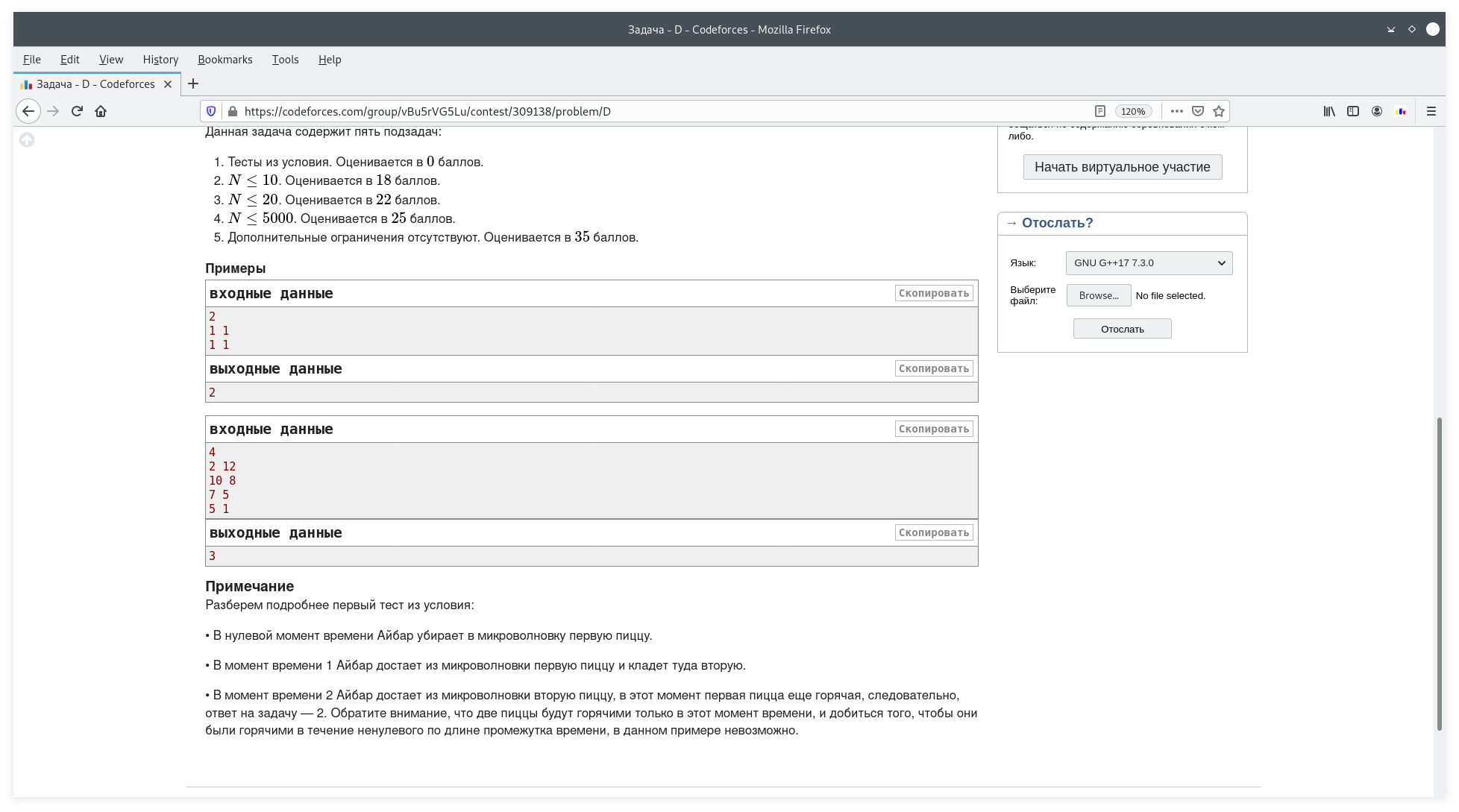 Давай решим облегчённую задачу, у нас есть x пицц и мы уже знаем порядок в котором их нужно греть. Какие условия должны выполняться чтобы мы разогрели все x пицц.