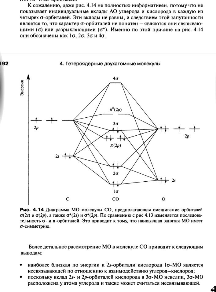 Диаграмма МО для СО на самом деле одна из самых (если не самая) сложных (нетривиальных) среди всех двухатомных молекул.