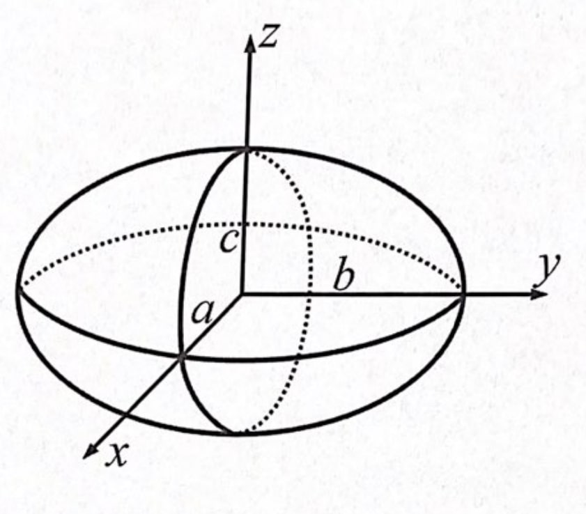The ellipsoid shell is fixed, and the coordinate system x y z is established as shown in the figure. When t=0, the ball is located at \left(0, y_0, z_0\right), and the velocity of the center of the sphere is \left (v_0, 0,0\right). It is known that y_0 \ll a, b, c, r and \frac{v_0^2}{g} \ll a, b, c, r. Find the coordinates x(t) and y(t) of the center of the sphere at any time after that.