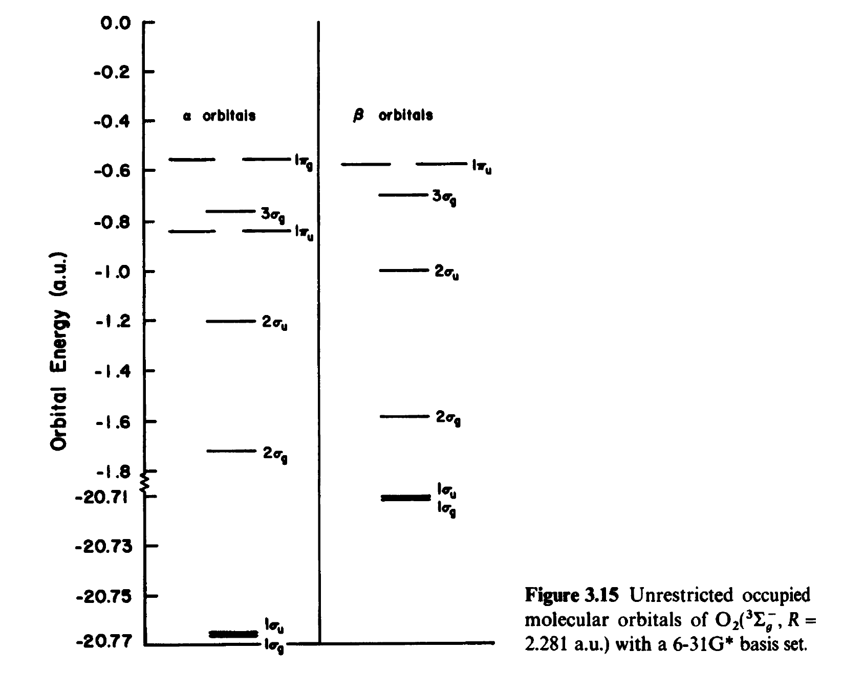 Отлично. Именно такую картинку мы получим если найдем волновые функции методом Хартри-Фока, считая, что у двух спаренных электронов \alpha и \beta пространственные части одинаковые (вполне разумное предположение)!.