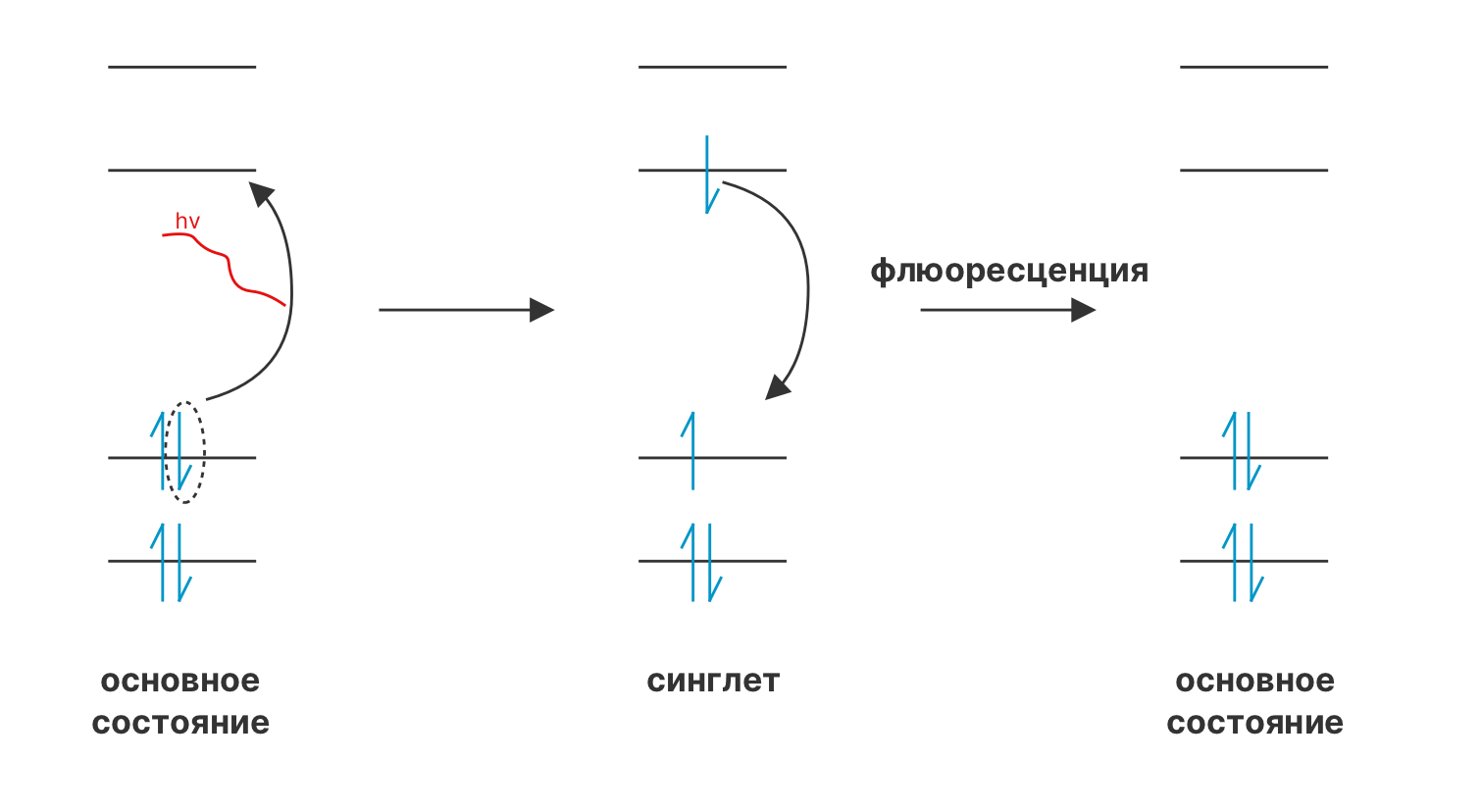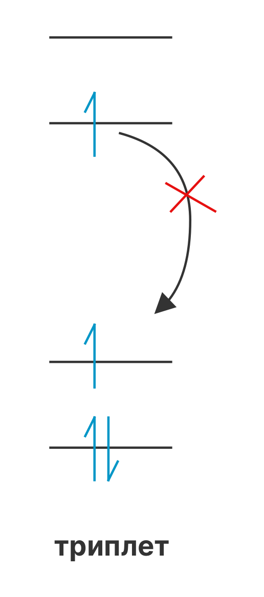 В чем дело? Когда мы излучаем молекулу, мы переносим электрон с нижней орбитали на верхнюю. Но есть важный нюанс (приготовьтесь, щас у вас снесет башку) – важно учитывать спин.