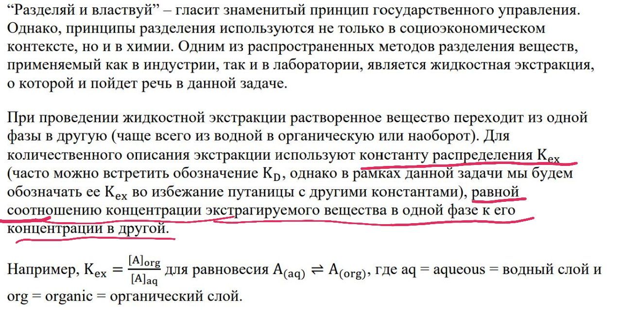 По-моему, все правильно, просто именно этот момент считается как “частный случай”. В условии сказали, что трибутилфосфат является вспомогательным лигандом, который облегчает экстракцию. Т.е, в общем случае, K_{ex} это по определению константа равновесия перехода в-вк из одной фазы в другую определенным способом