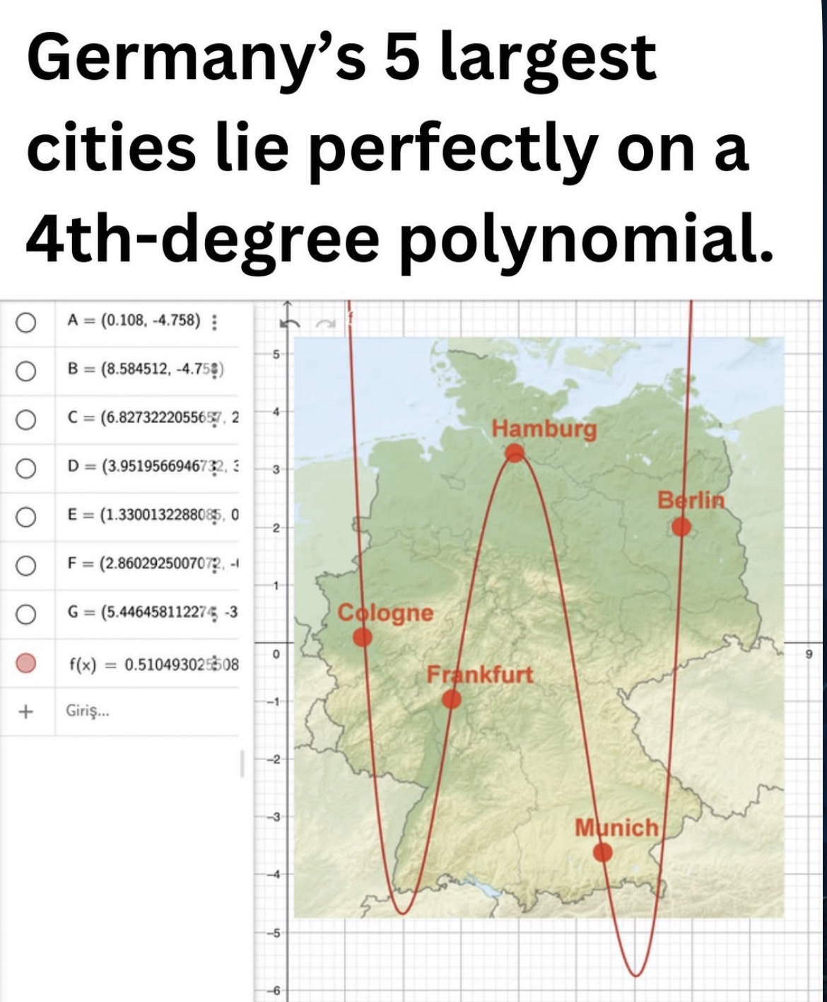 I bet this curve perfectly predicts Germany’s 6th largest city as well, R^2=1 on the fit set surely means R^2=1 on the validation set