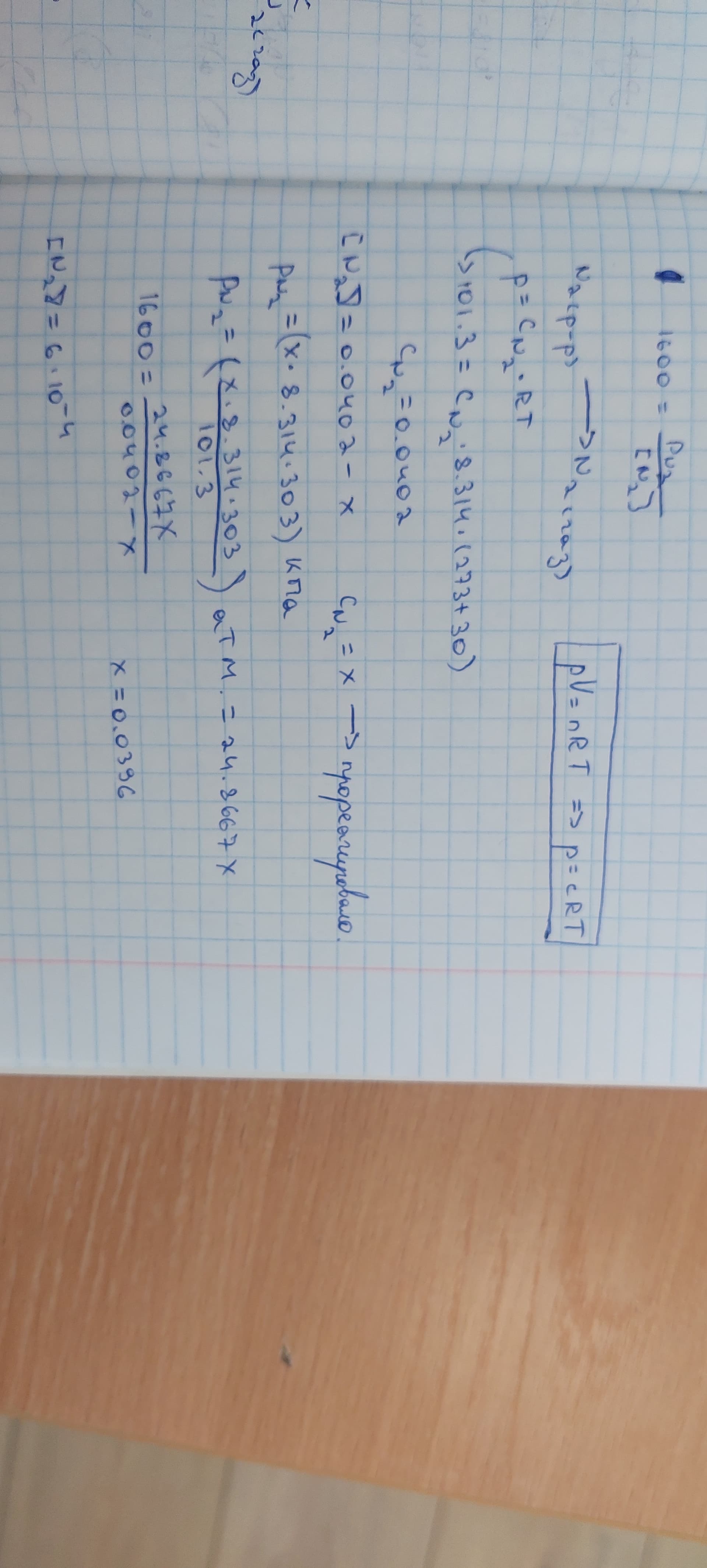 Чему равна концентрация N2 N^2 N2 в воде при атмосферном давлении 1,0 атм и температуре 30°С 30 \degree С 30°С ? Культура содержит 0,84 мг сухого веса бактерии на мл, содержание азота в бактерии равно 7,0 % по масс. Какой минимальный объем воздуха (1 атм, 30°C 30 \degree C 30°C) потребовался для бактерий, содержащихся в одном литре такой культуры, при условии, что они поглотили весь азот из воздуха?