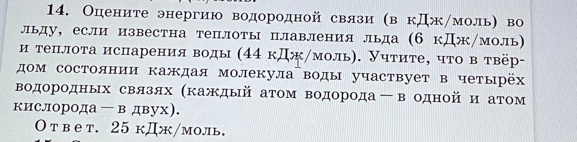 Как решать подскажите пожалуйста, пыталась составить систему где х- энергия связи Н-Н, а О-Н - у. 6=2(х+у) Дальше выведем уравнение H2O(тв)—>H2O(ж) +50кДж. Какое уравнение тут составлять