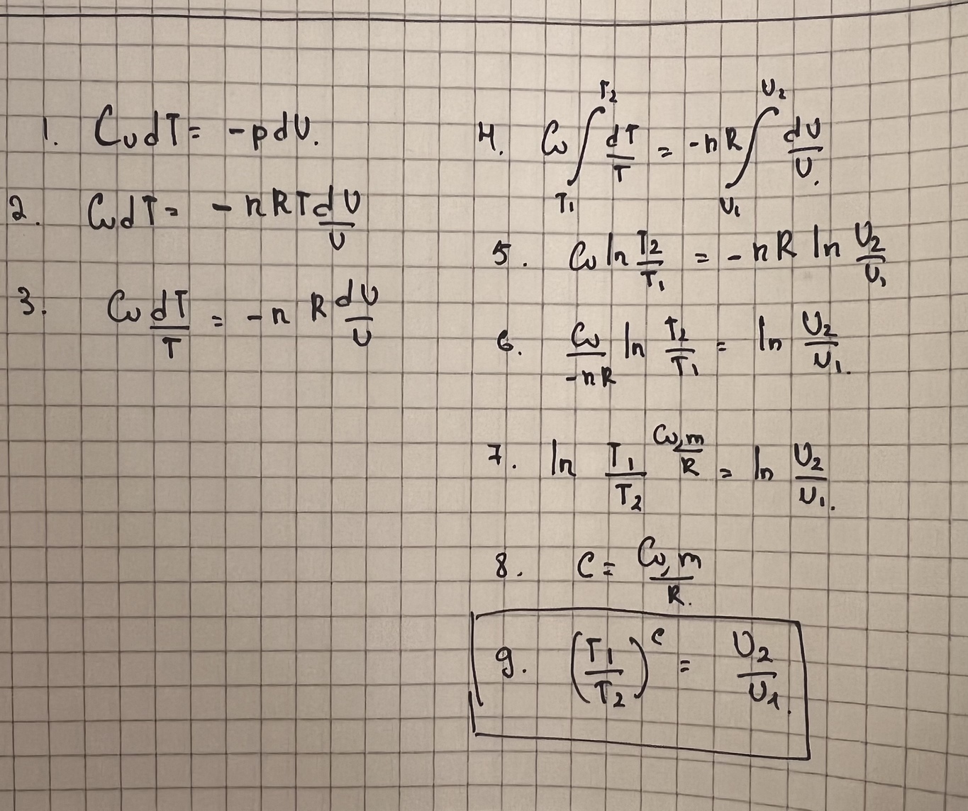 А ты уверен то что гамма равна 4/3 ? Про температуру, мы же берем уже VT^c =const там, c=Cvm/R. Твоя гамма ведь для поли атомных нелинейных, а CO2 линейная молекула, соответственно вращение по своей оси не считается, степень свободы вращения равно 2