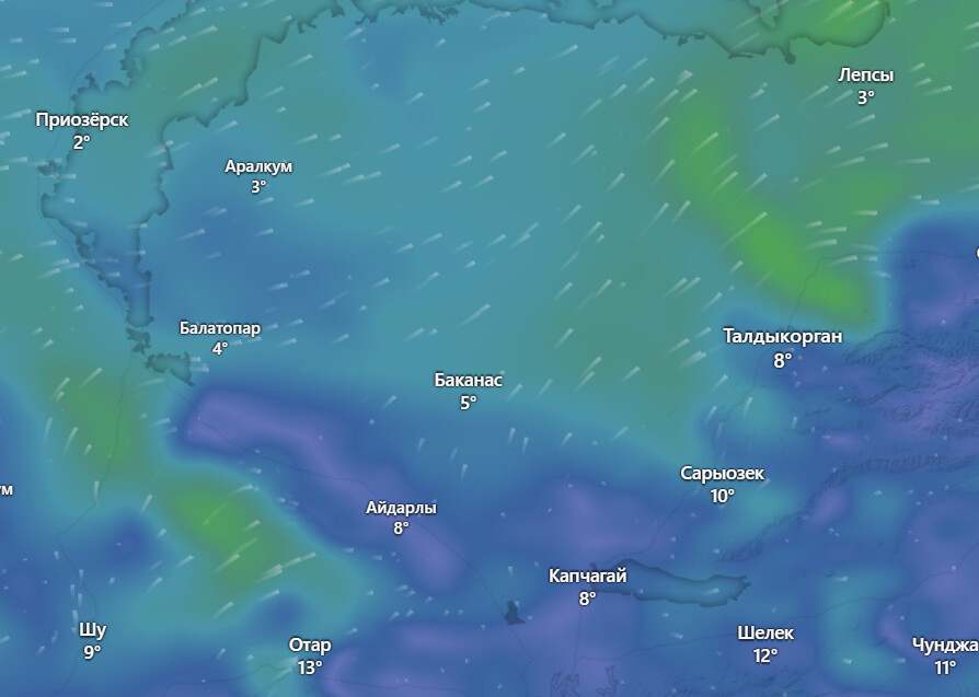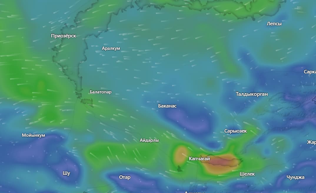 Так же можно видеть что в первом фото Капчагай теплый и значит ниже давление->работает как корридор для ветра