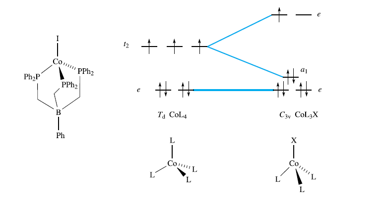 Я бы сказал здесь не совсем удачная формулировка, потому что первостепенно здесь то, что вы переходите от \ce{ML4} к \ce{ML3X}, что, вне зависимости от природы L и X, приводит к переходу от T_d симметрии к C_{3v}