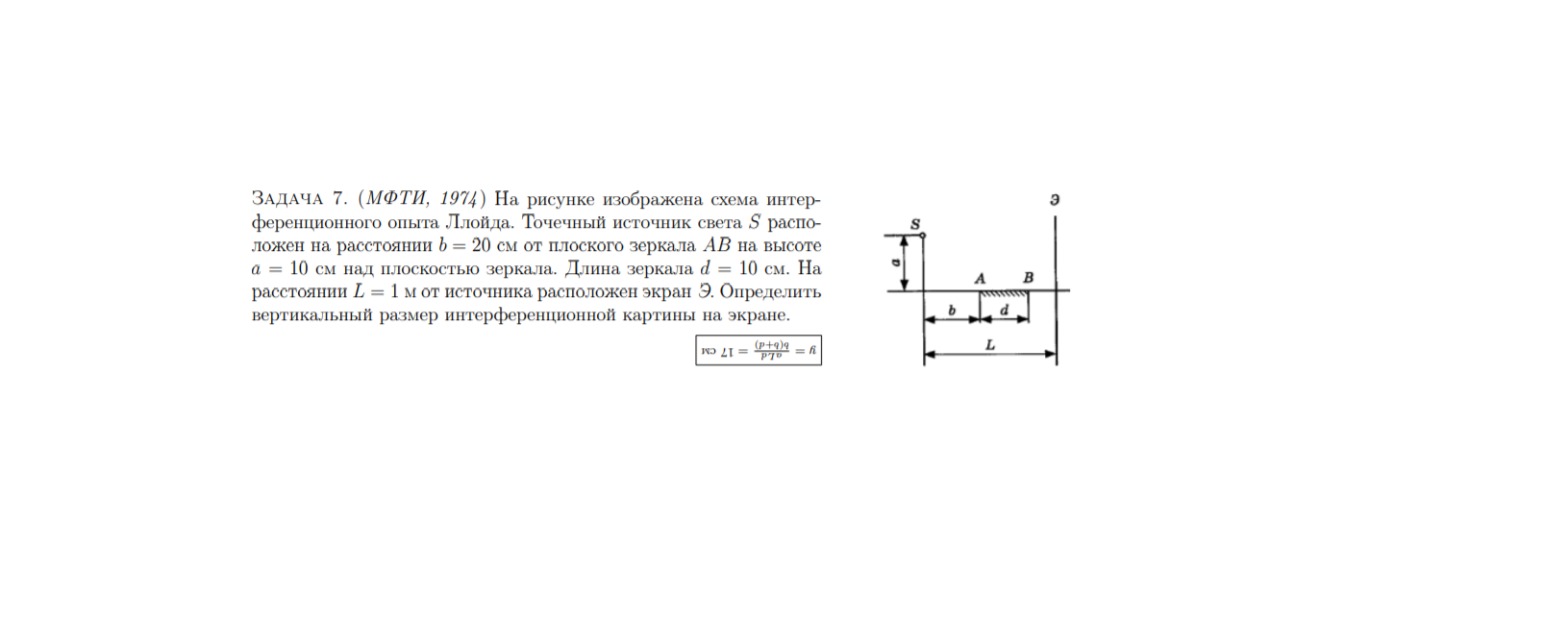 Обозначь изображение источника от зеркало и проведи два луча, проходящих через края зеркала. Область между ними и есть область появления интерференционной картины, то есть обычной геометрией ты находишь ширину освещённой изображением части экрана.