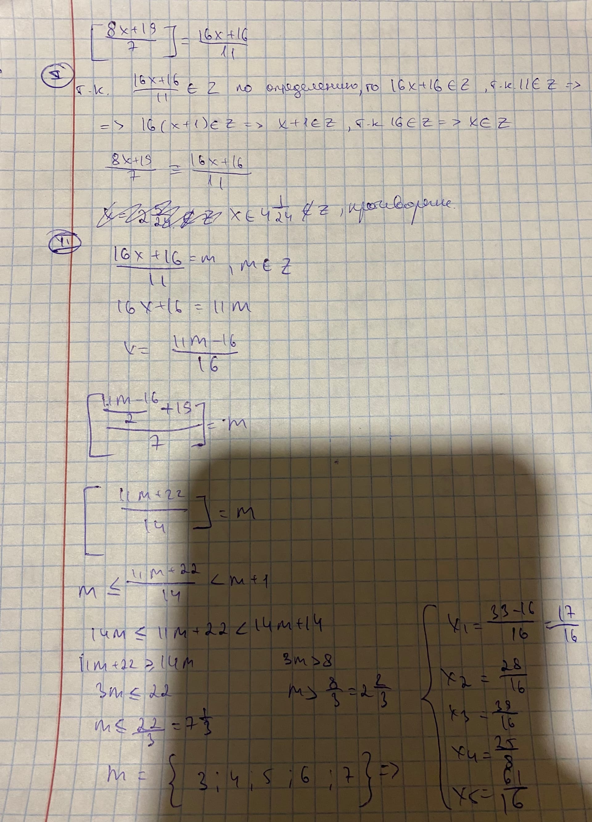 Решила двумя способами, первый за счет цепочки рассуждений, а второй по алгоритму (он и верно получился). Не могу понять в чем ошибка в 1 способе, ведь нет таких чисел, при делении на 16 или 11 которого мы получим целое число, но при этом само число нецелое.