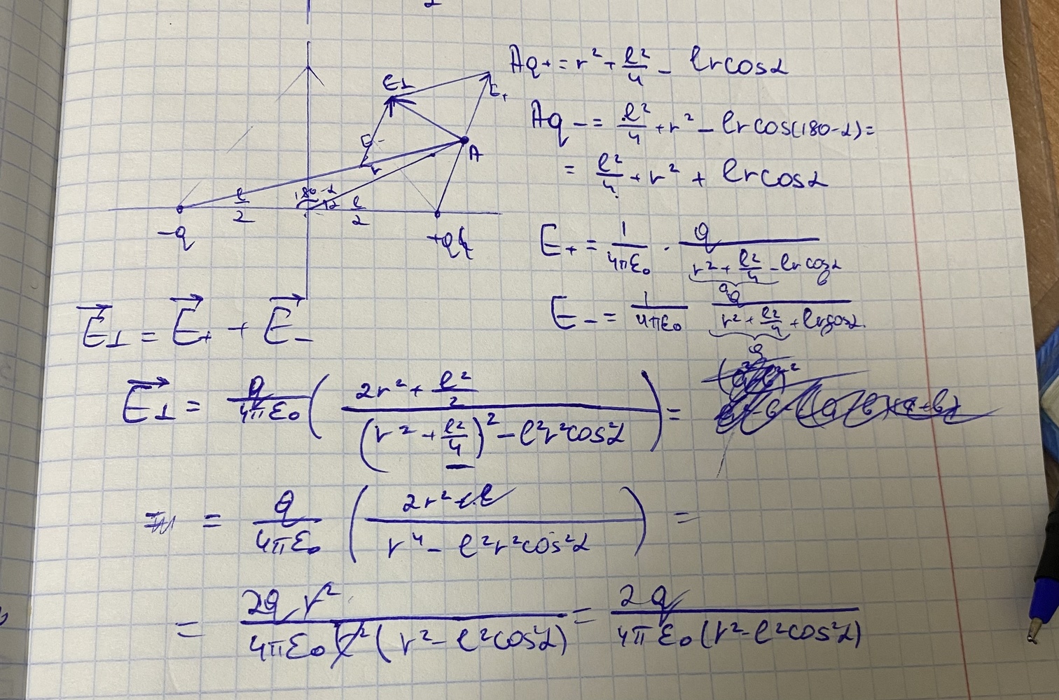 Вобщем рассматривается система диполя и заряда возле него, в книге просто сказали что можно ее вывести и должна такая получиться, а у меня даже 3 не фигурирует нигде