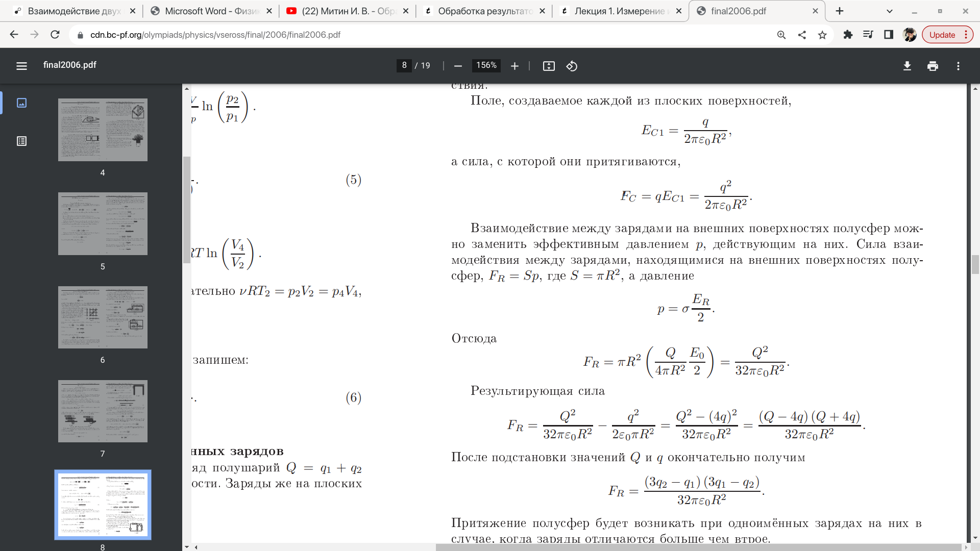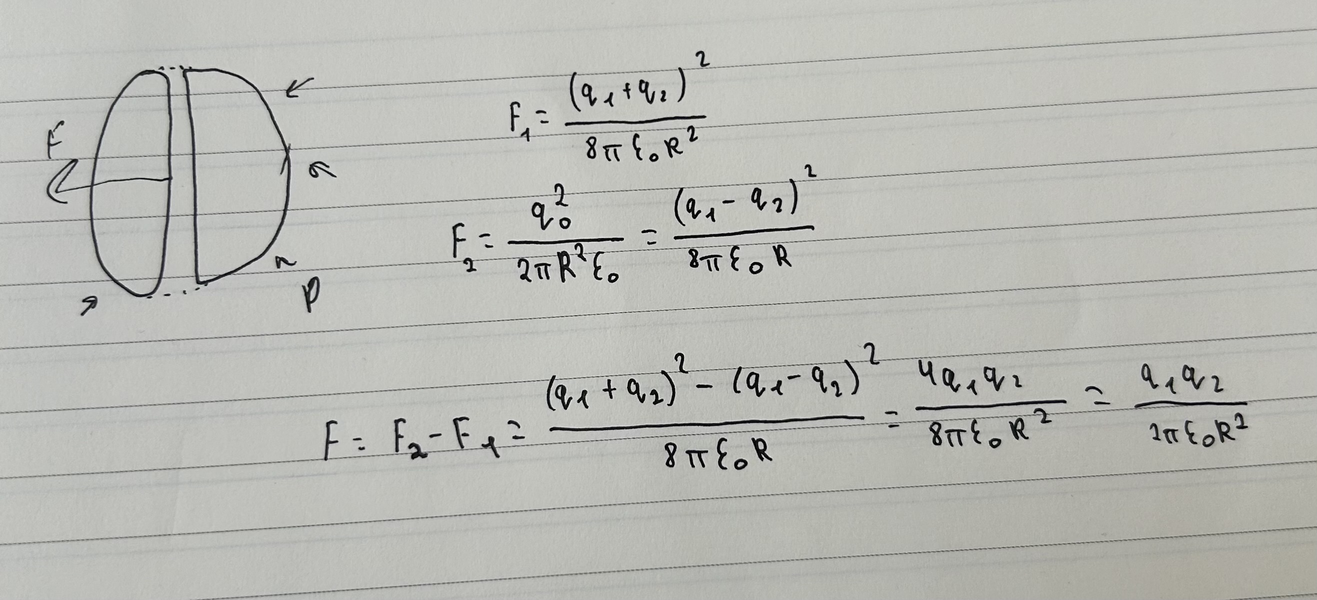 F = \frac{Q^2}{32\pi\varepsilon_0 R^2}
