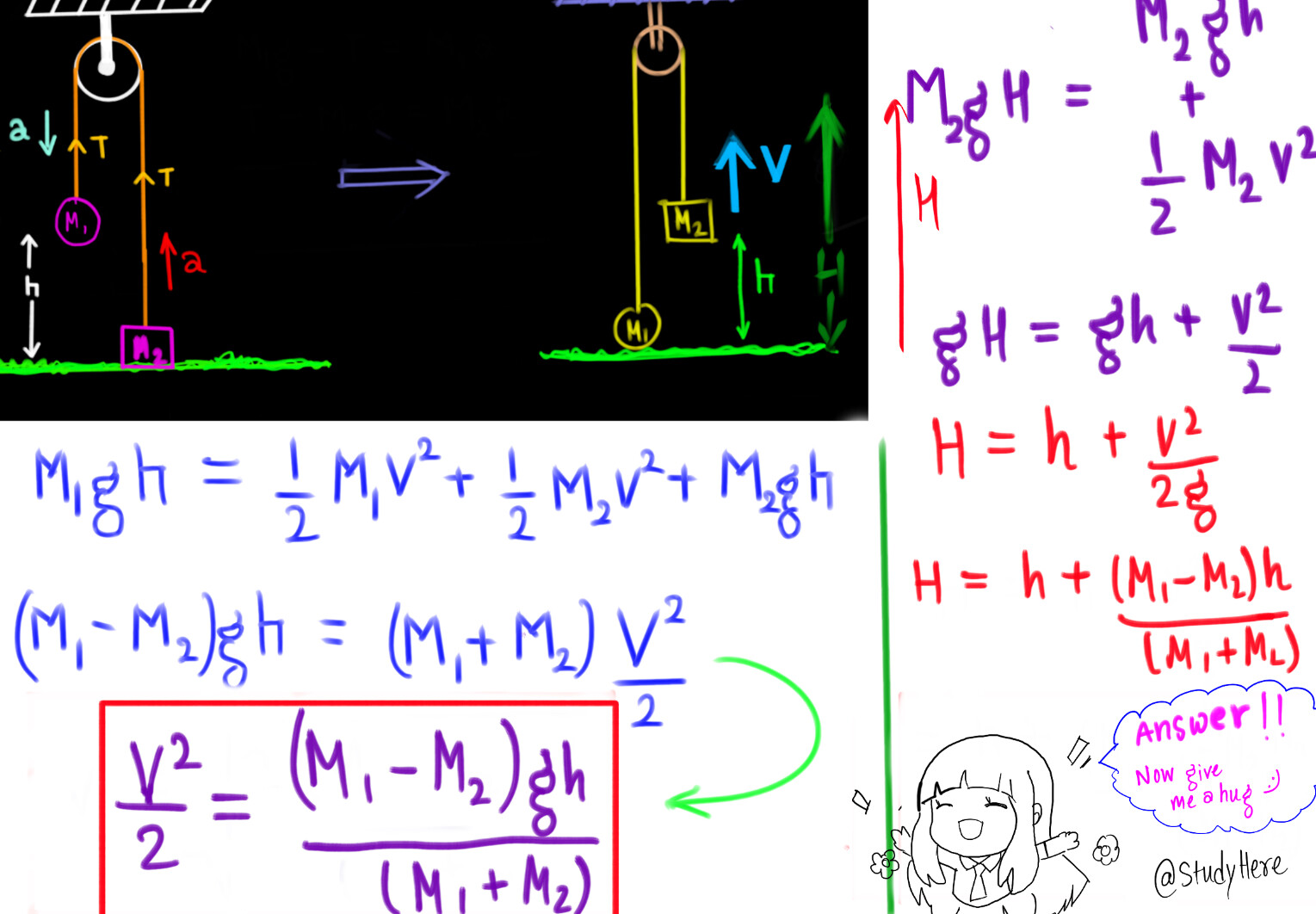 Now We can find the Velocity of The Second Block using Conservation of Energy and Then We can Apply Conservation of Energy on The second Block’s “Extra Motion” to find what Height It Goes !