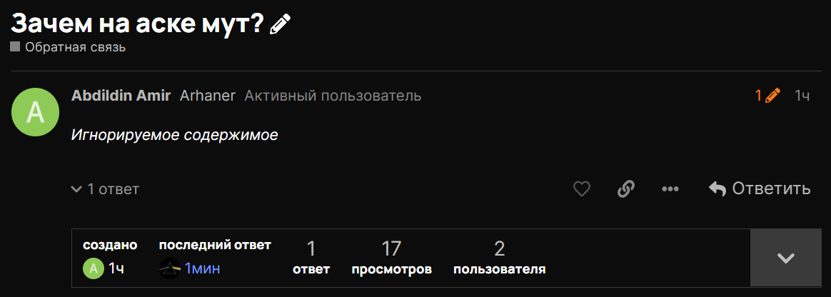 Аск работает на базе Discourse. На нем же работает куча других форумов, тот же College Confidential. Mute просто одна из базовых фич, которые бывают нужны на форумах.