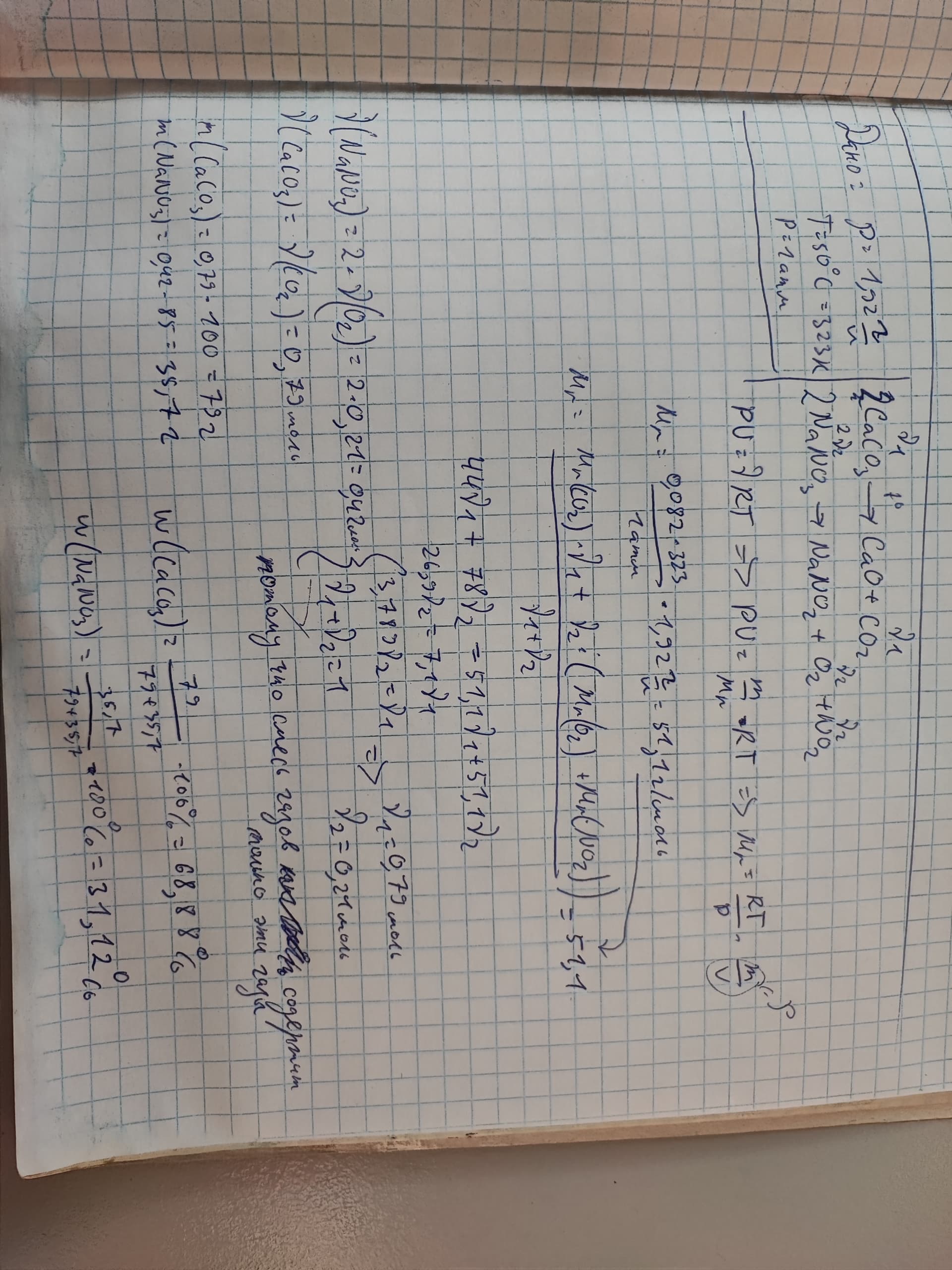 что нитрат натрия при прокаливании разлагается до нитрита натрия.” В газовой смеси которая образуется при прокаливании содержится кислород и углекислый газ, т.е. молярная масса смеси должна быть меньше 44 и больше 32 г/моль. А по условию получается молярная масса смеси газов = 50,9 г/моль… В чем моя ошибка?