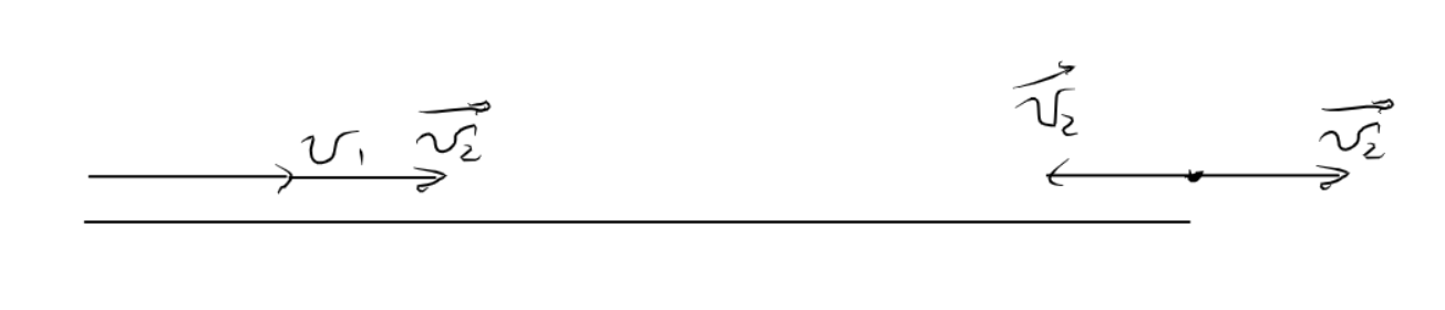 Тогда скорость второй машины будет равняться нулю, а скорость первой v_1 + v_2 в сторону второй. Дальнейший ход решения тривиален.