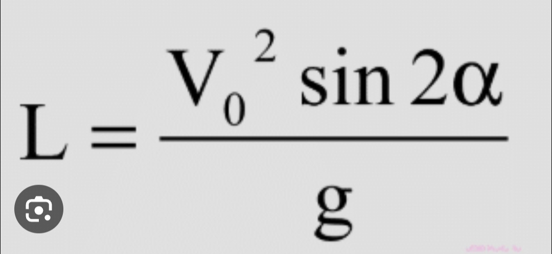 максимальное значение длины полета достигается при a=45°, тогда синус получится равным единице, а при других значениях угла будет меньше нее и следовательно расстояние тоже