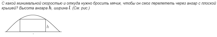 якобы если ты наидешь минимальную скорость требуюмую для перелета ангара с верхнего края, то по закону сохранения энергий которое я писал выше видно что ты также наидешь и минимальную скорость бросания мячика с земли.