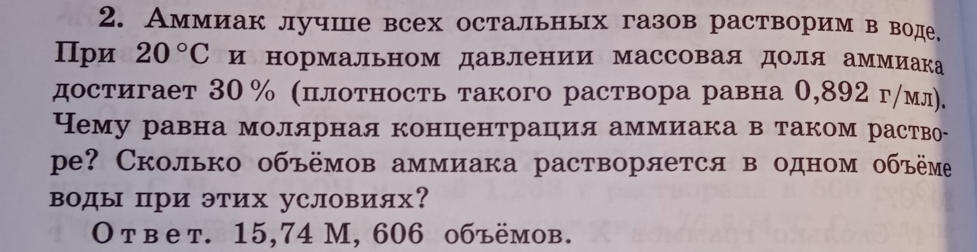Если начальный объем воды составляет 1 л , то в нем может раствориться х г аммиака. По условию, массовая доля аммиака в полученном растворе равна 30%. Следовательно,